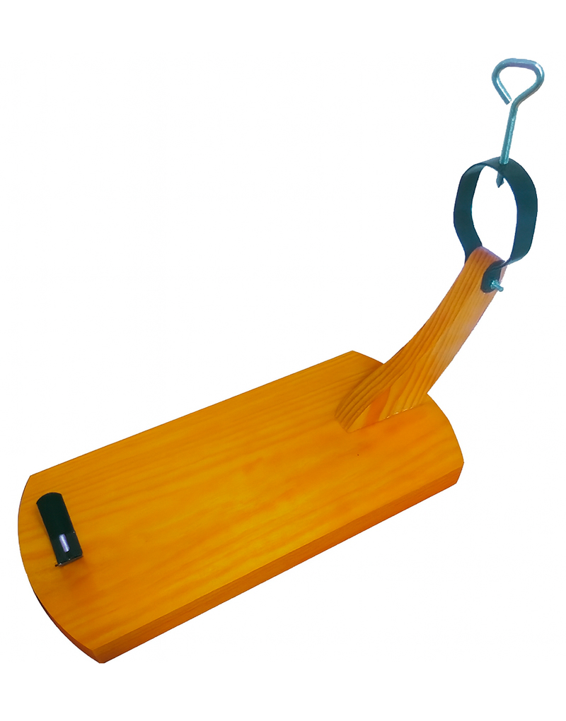 Soporte jamonero con la base redonda en ambos extremos y el brazo en forma de góndola, herrajes en pintura negra termolacada. Diseñada para jamones de gran tamaño. Realizada en madera de Pino Gallego de primera calidad de gran dureza y lacado con productos no tóxicos.